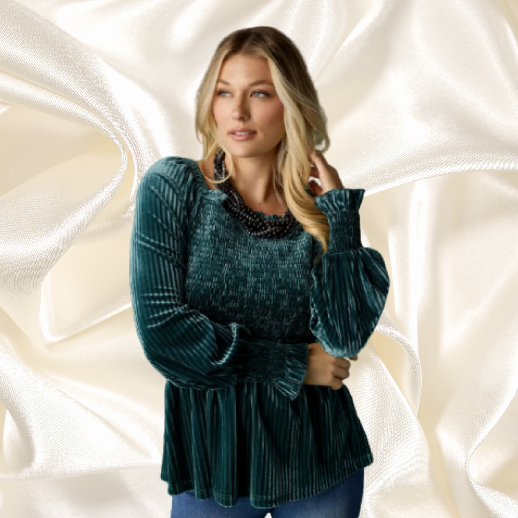 You will be noticed in this velour top.